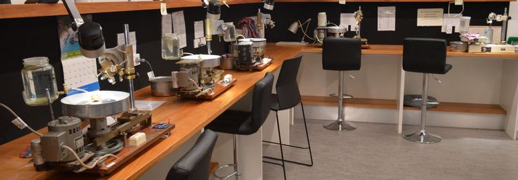 The club has a separate faceting room with 12 faceting machines. Members are provided with their own dops and all the necessary laps and grits to complete their own faceted stones
