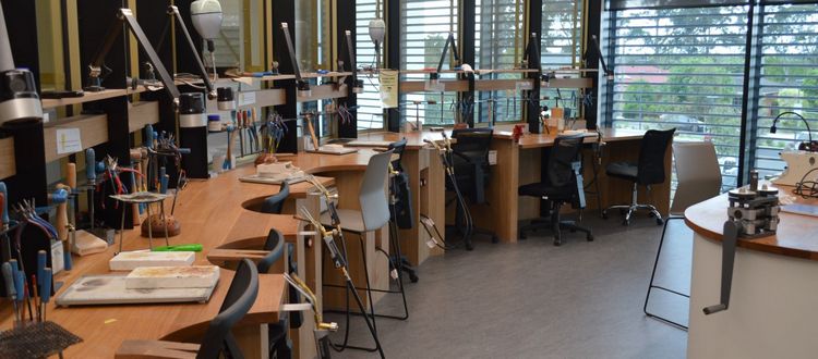 Our jewelery room is equipped with the tools to undertake a variety of jewelery making, silver-smithing and other metalwork, enameling, carving, cutting, shaping and soldering. We have a Kiln room to enable casting.